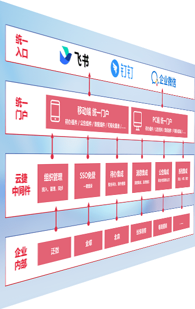 对协作平台提供支持服务,,,支持企业应用与协作平台对接,,,,包含组织同步、、消息集成、、待办集成等。。支持目前主流的协作平台:钉钉、、、、企微和飞书。。。。